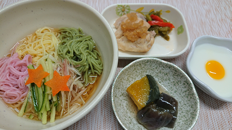 夏の行事食(3色そうめん)