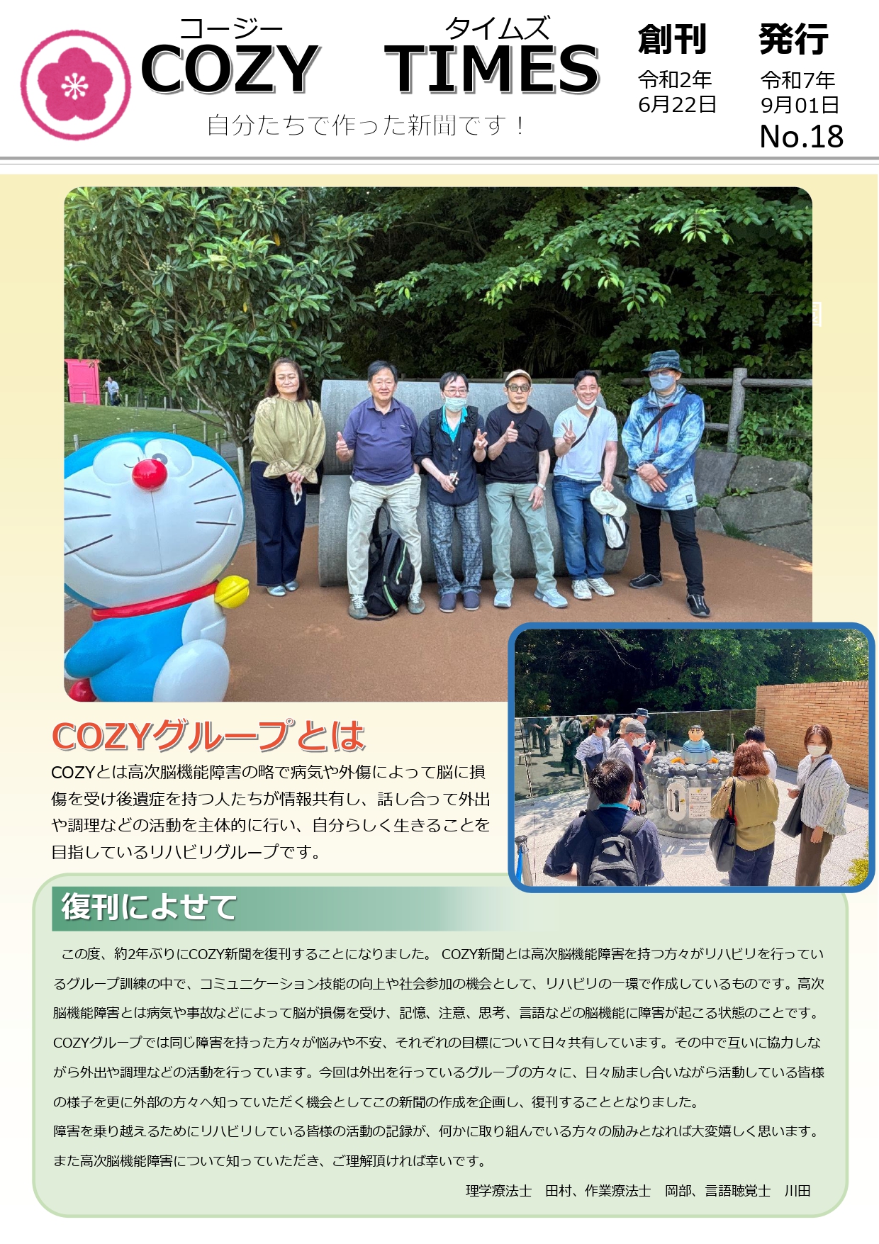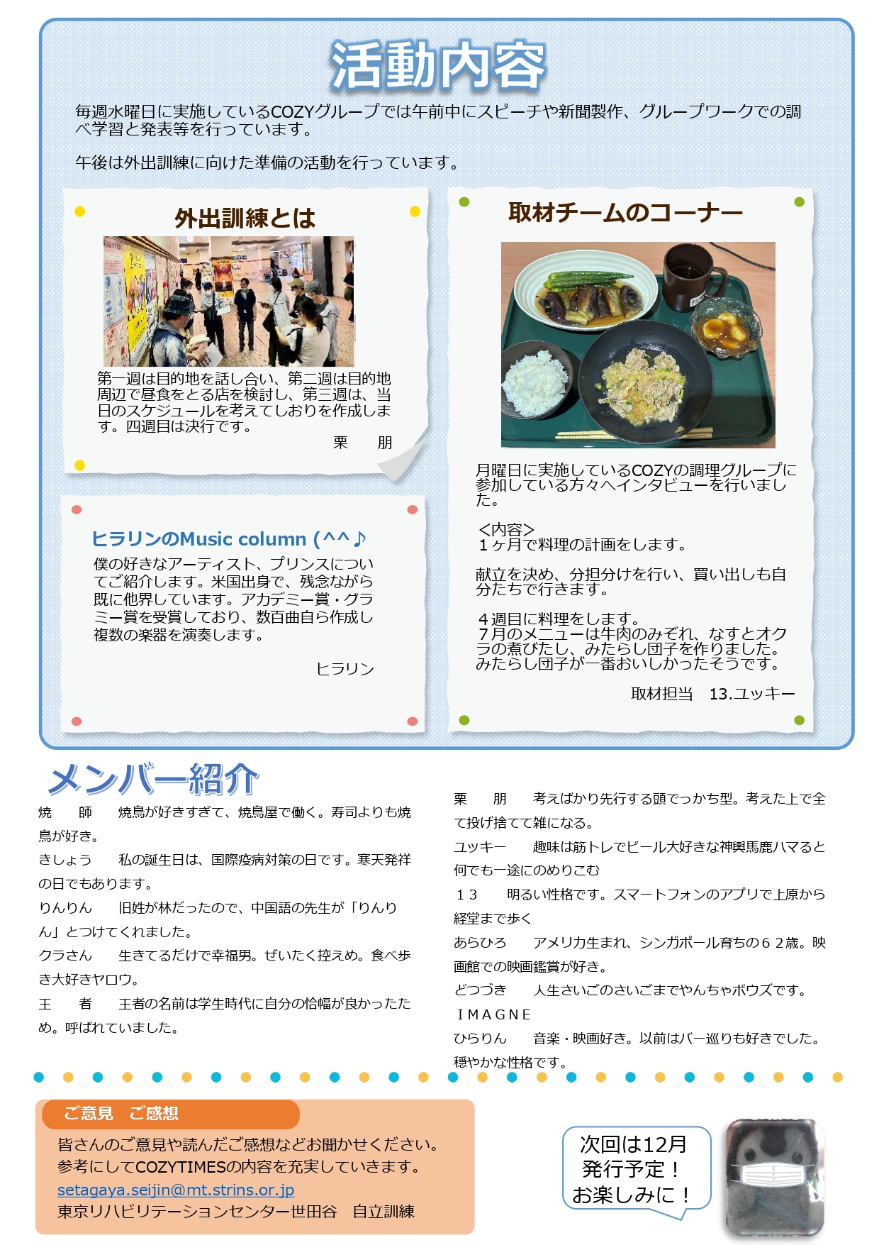 当センターの自立訓練事業所の利用者さんたちが自分たちで作る新聞「COZY TIMES」。