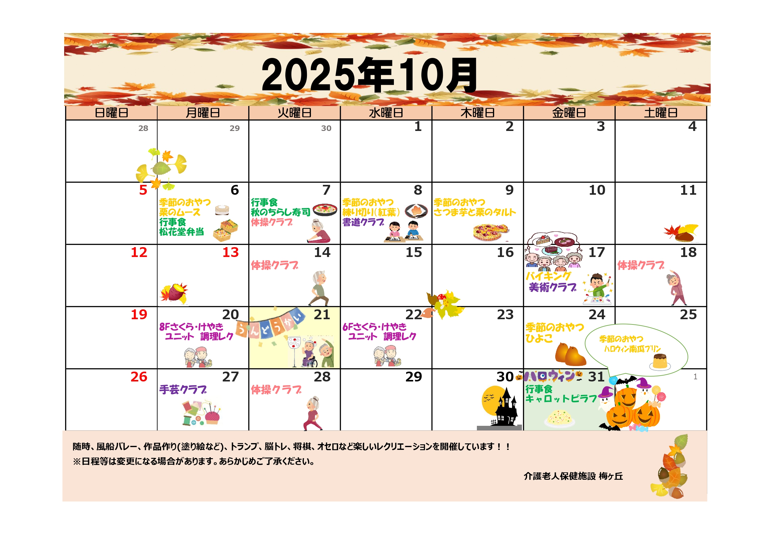 【介護老人保健施設】令和7年10月行事カレンダー