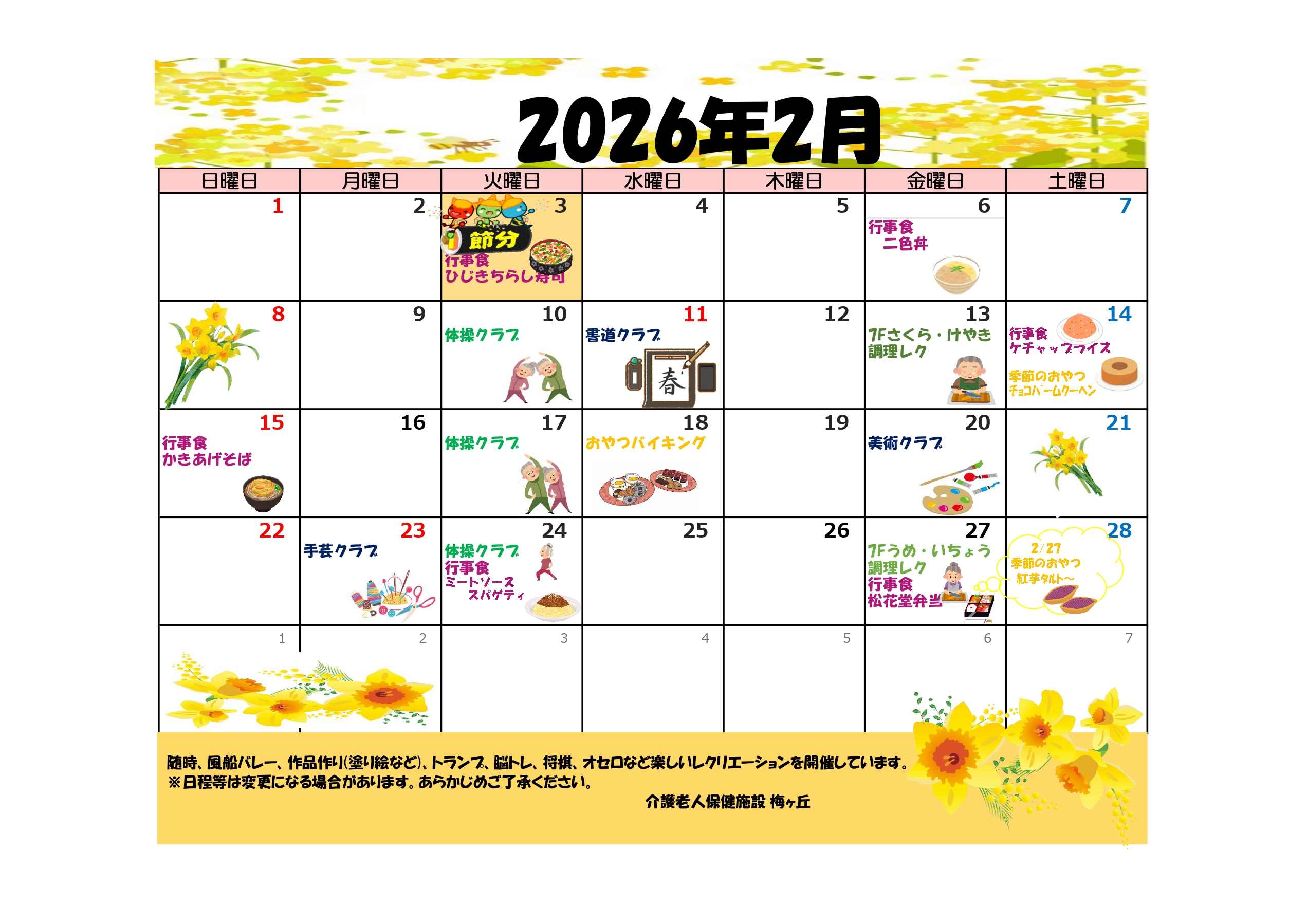 【介護老人保健施設】令和8年2月行事カレンダー