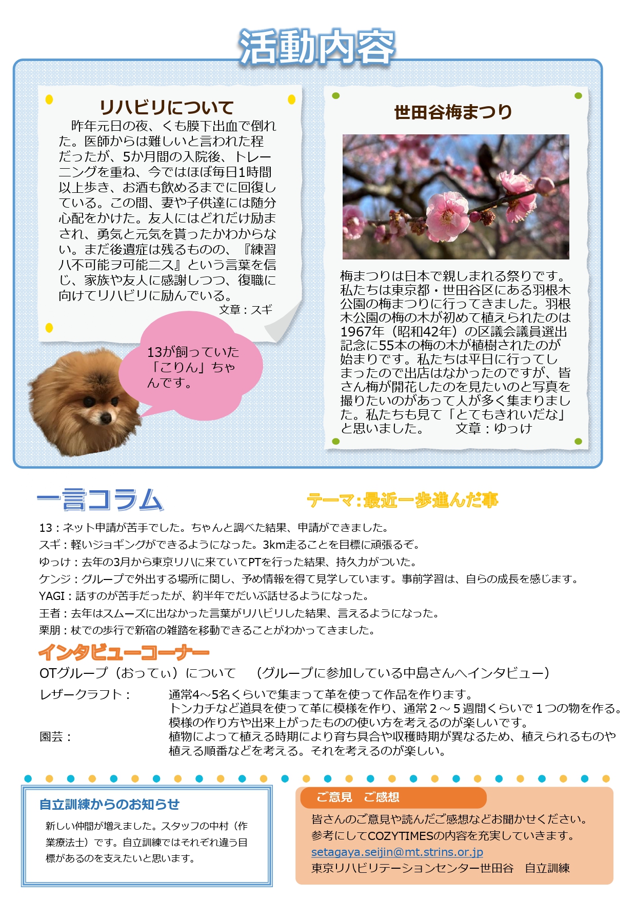 【自立訓練】COZY TIMES 春号を発行しました