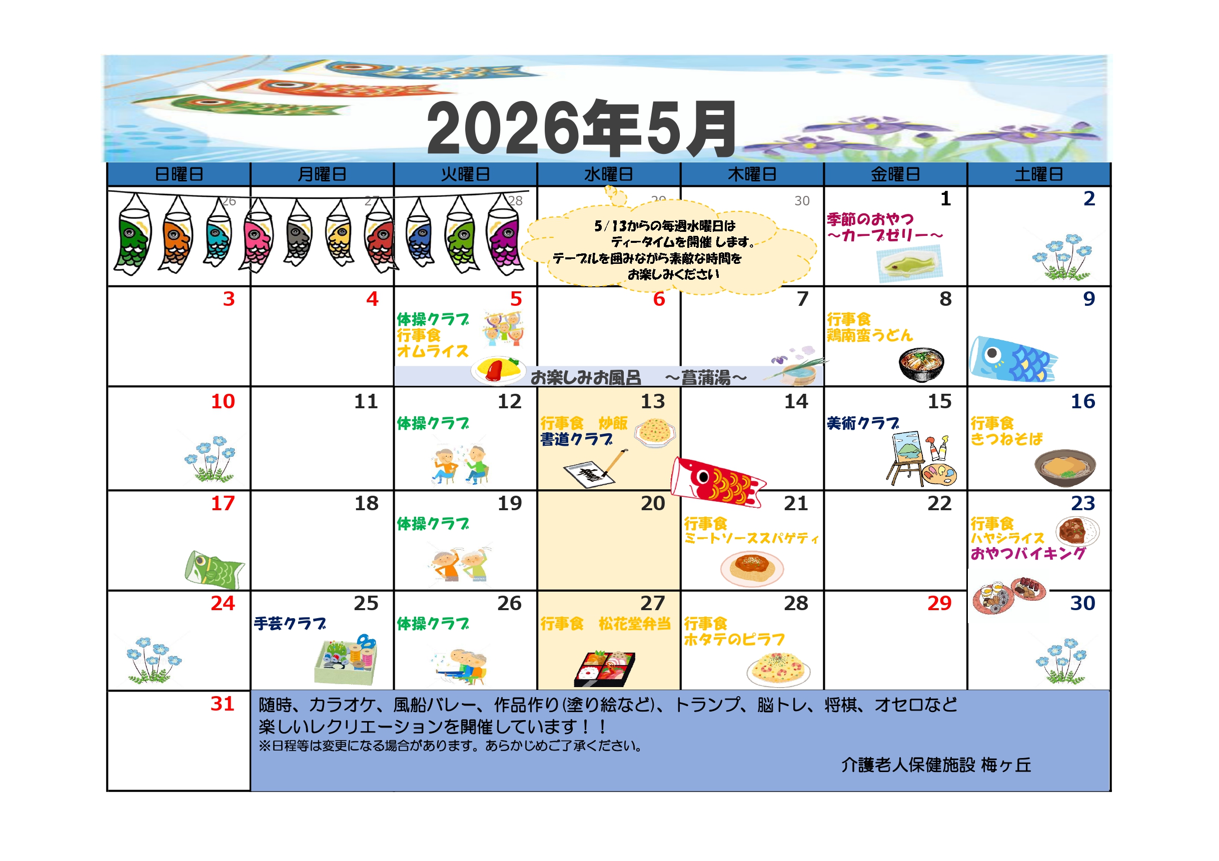 【介護老人保健施設】令和8年5月行事カレンダー