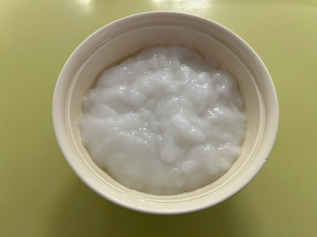 | 形態 | 全粥をミキサーにかけゲル化剤を加えゼリー状にしたもの |