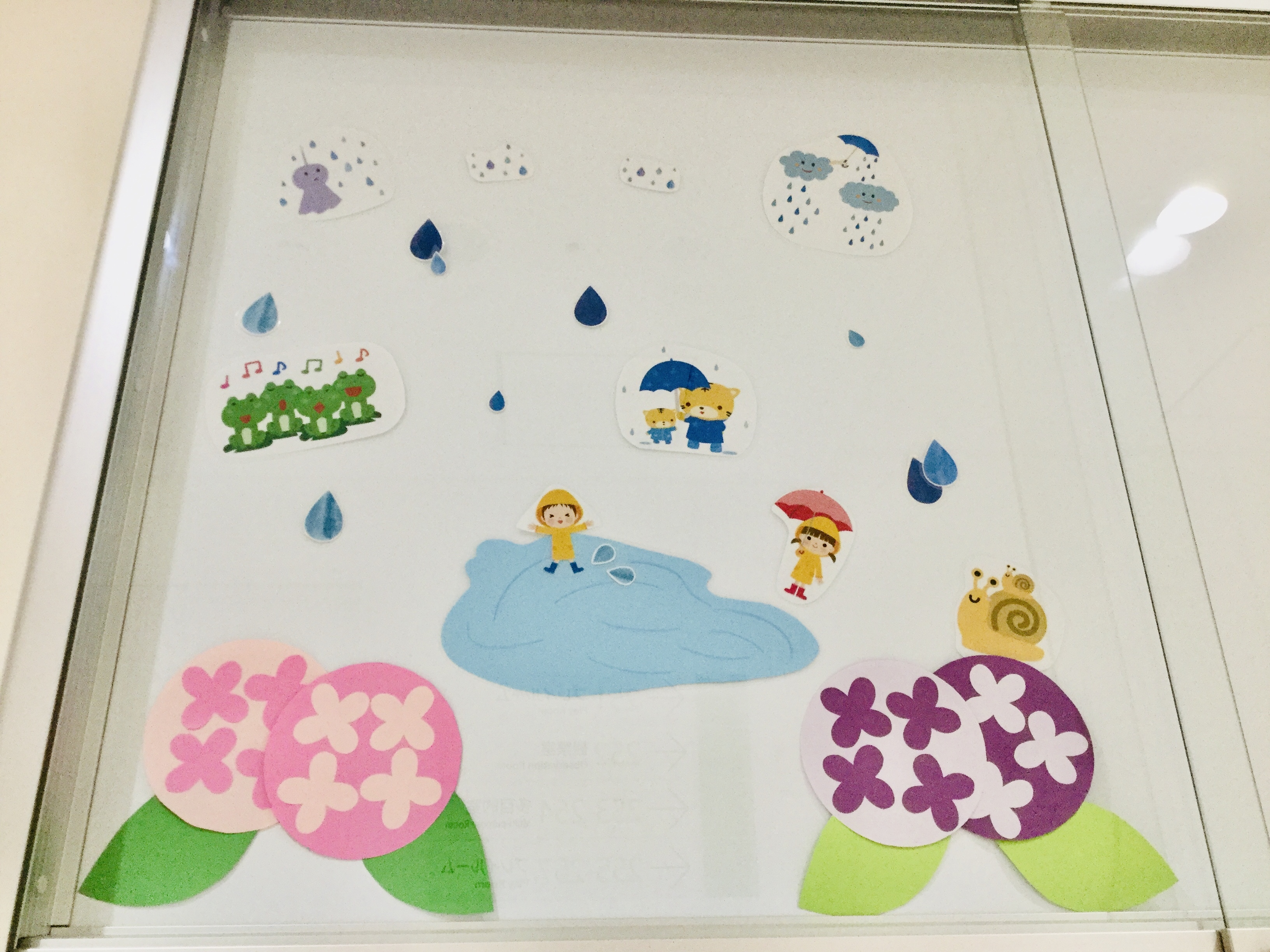 ついに、梅雨明けしました!ぷらみんぽーとでは、季節に合わせて紫陽花の花や水たまりで遊ぶ様子を壁面にしていましたが、そろそろ交換の時期です。いよいよ夏の到来!次の壁面は何か…ぷらみんぽーとに来た際に見てみてください!
