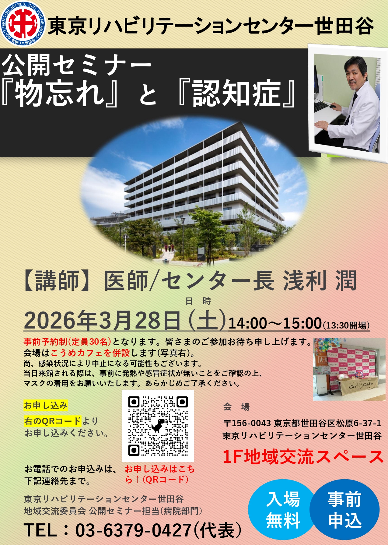 参加費は無料、お申込みは、下記のお申し込みフォーム、ポスター記載のQRコード、お電話よりお申し込みください。